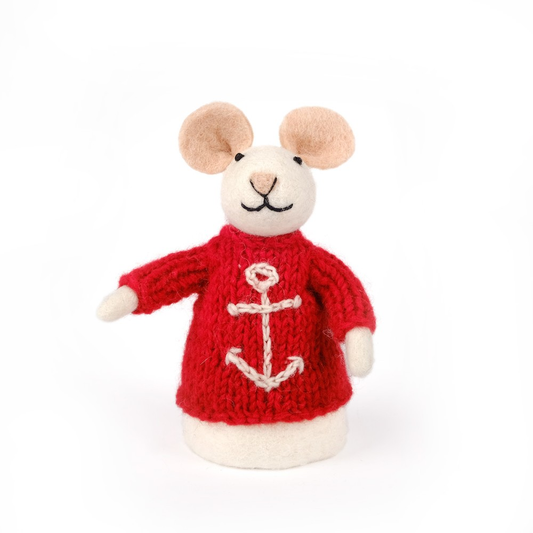 Filtad mus med röd tröja med ankare