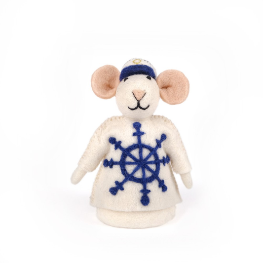Filtad mus med vit tröja med ankare