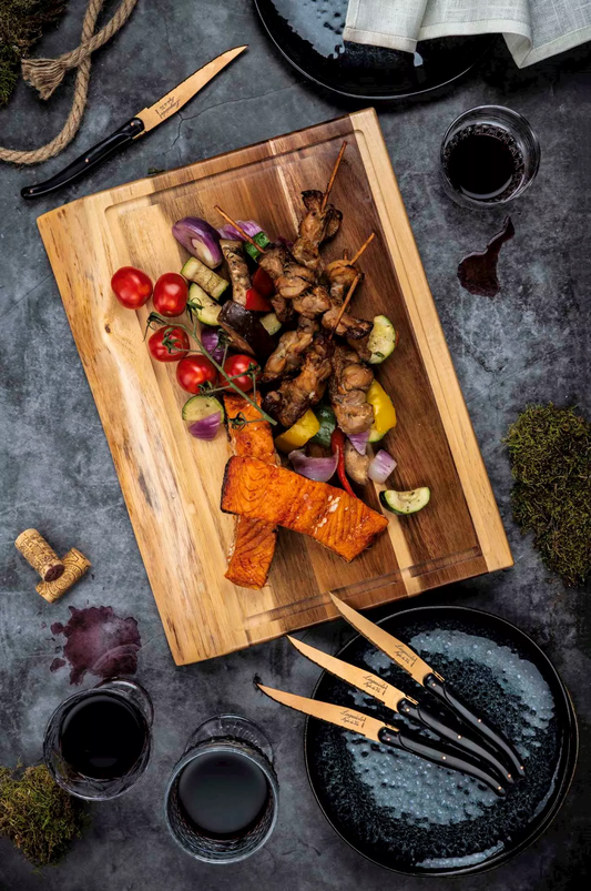 Skärbräda för korv med svart kniv. Laguiole, Style de Vie.